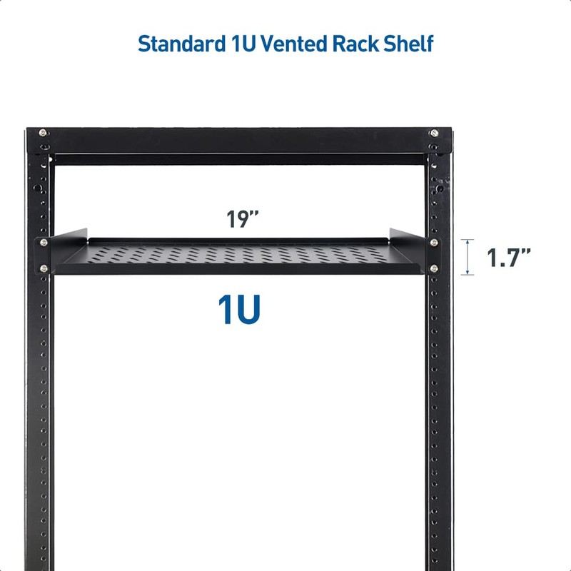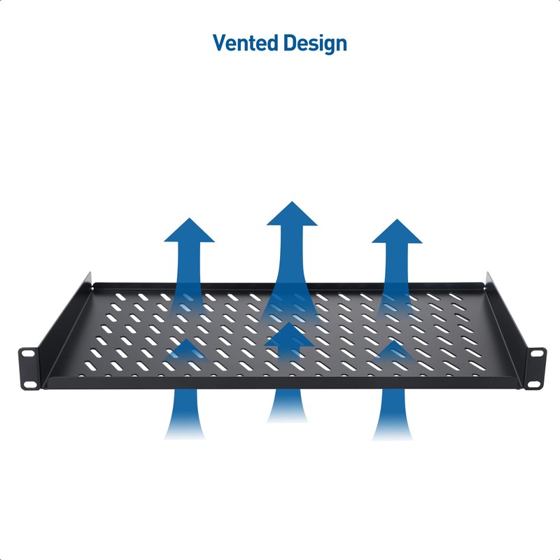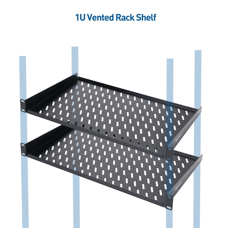 - The rack shelf 19 inch 1u features ventilation holes for superior airflow; Keep your hardware cool with improved airflow