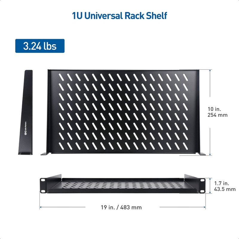 - Superior construction of the 1u shelf 1.5mm steel for long-lasting support and support for the most demanding networking hardware