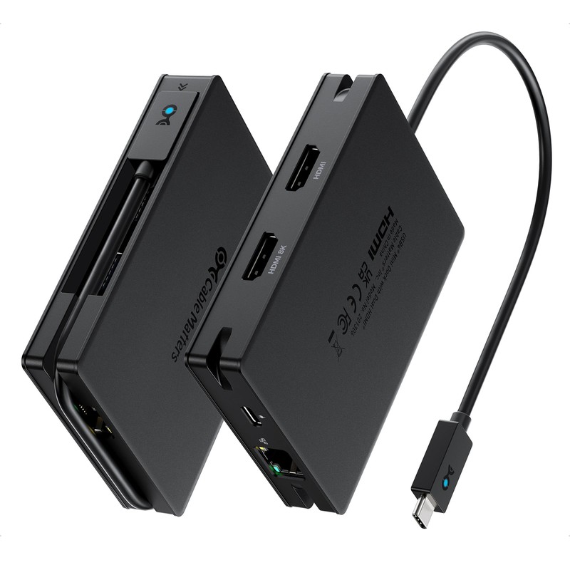 Cable Matters 8-in-1 Portable 40Gbps Dual HDMI USB4 Hub, USB 4 Dock with 2X 4K@60Hz or 1x 4K@120Hz / 8K@30Hz, 100W PD, Gigabit Ethernet, Compatible with Thunderbolt 4 (*macOS's Display Limitation)