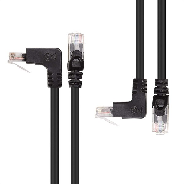 - COMBO PACK proporciona un cable de conexión Ethernet de recto a angulado hacia arriba y de recto a angulado hacia abajo; Encuentre el mejor ángulo de conexión de 90 grados con el cable hacia arriba o hacia abajo desde el puerto RJ45; Solución ideal para conectar un televisor de pared, un teléfono VOIP, un conmutador Gigabit Ethernet, un panel de conexiones o un punto de acceso inalámbrico