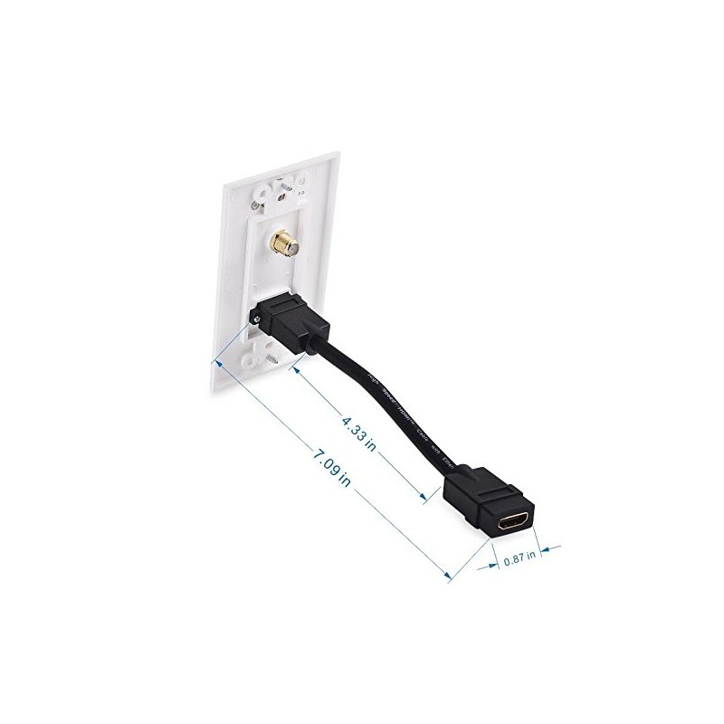 • HDMI coupler insert with a female port on the wall plate front and an HDMI pigtail cable on the back easily connects to an HDMI cable run in the wall; Mount near your AV receiver or home theater system with an existing low voltage wall plate location or new HDMI outlet wall plate location; A 4-inch HDMI pigtail cable on the rear of the insert helps connect the HDMI cable
