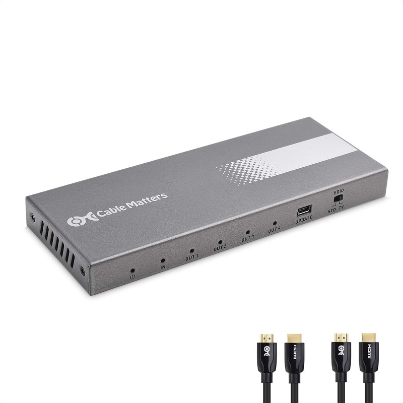Cable Matters HDMI Splitter HDMI Splitter 1 In 4 Output 4K 60Hz 18Gbps HDMI 2.0 HDR HDCP 2.2 Support Simultaneous Output