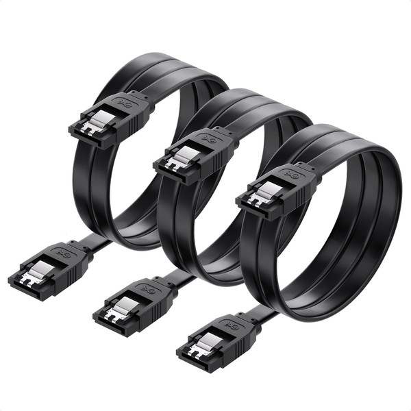 Cable Matters SATA Cable (Straight) Sata3 Cable 61cm 3 Pack 6 Gbps Support Latch SSD and HDD Expansion Sata3 Serial ATA3 Cable SSD Cable Black