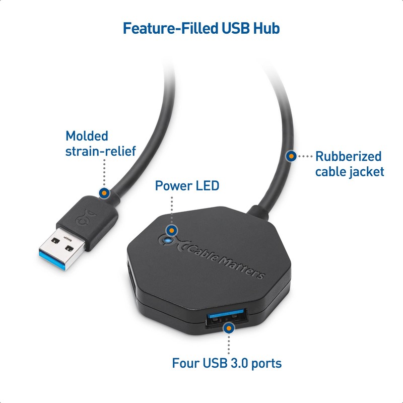 - USB hub long cable with 5Gbps USB Support - the USB hub 3.0 immediately expands a single USB port from your laptop, notebook, tablet, or docking station into a SuperSpeed USB hub extension that supports 4 USB peripherals with a 5Gbps data transfer rate