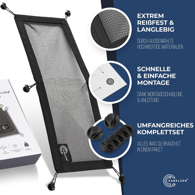 - ✔ ELEGANT DESIGN - The unique KabelZen cable net clings to any desk and offers plenty of space for invisible cable hiding. Your utensils are tidy and always at hand