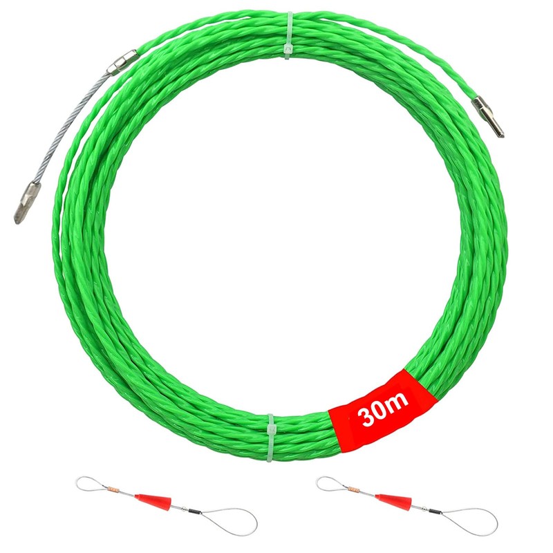 Cable Puller 30 m, φ 4 mm Polyester Retractable Wire, Retractable Spiral Pull Wire, Fish Tape Wire Puller, Empty Tube for Fibre Optic Cable, Suitable for Fibre Optic Cable, Cable Retraction Aids