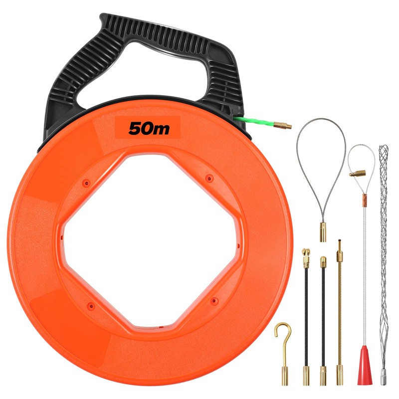 Cable Retractable Tape 50 Metres 4.5 mm with 7 Guide Springs Fibreglass Cable Reel Puller Puller Fibreglass Cable Puller Cable Tool Electrician Tools
