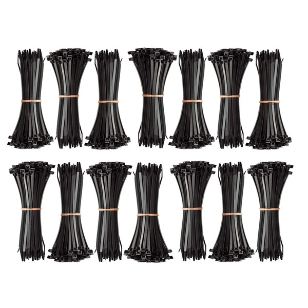 Cable Tie Set in All Standard Sizes (200 x 4.8 mm, Black, 330 Pieces)