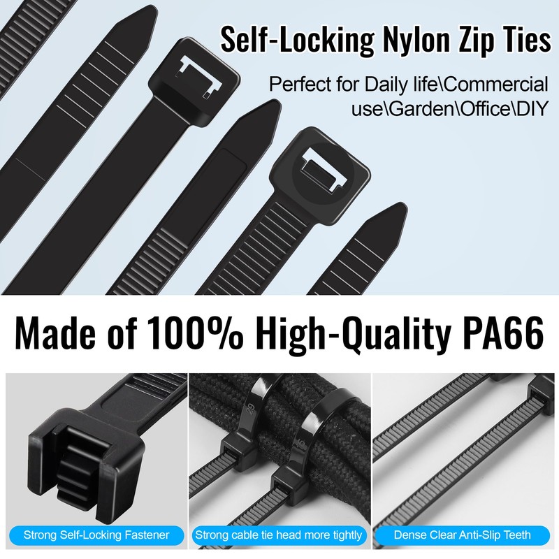 - 3. Versatile use: high-quality cable ties black for all possible uses. Whether in the home, in the garden, in the office, building house, in the garage, cable ties as cable management, you can also use for crafts, DIY......they are simply mega versatile.