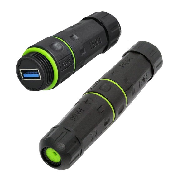 Cablecc IP68 Waterproof M20 Locking Type-A USB3.0 5Gbps USB-A Female to USB-A Female Extension Adapter Coupling
