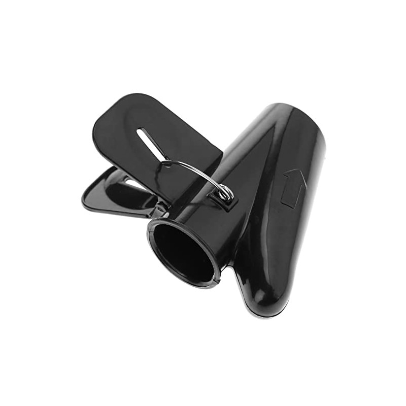 - Design: It has a black design with a cylindrical hole through which the cable cube can be inserted, so it is an organiser clip for a certain type of cable cover, which are round at the ends.