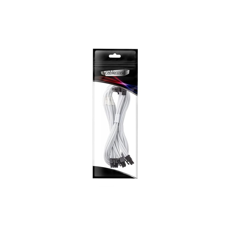 CableMod RT-Series Pro ModMesh Sleeved 12VHPWR 90° StealthSense PCI-e Cable for ASUS/Seasonic/Phanteks - Variant B (White, 16-pin to Triple 8-pin, 60cm)
