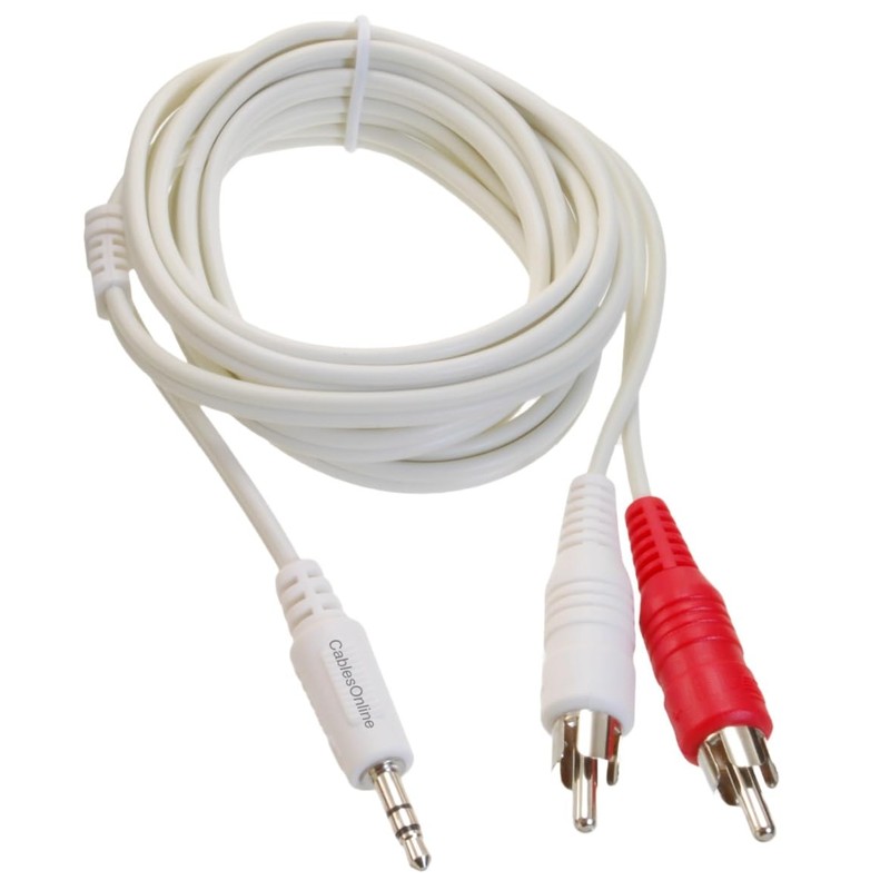 CablesOnline 6ft 3.5mm Stereo Male Plug to 2-RCA Male Audio Cable, White AV-006W
