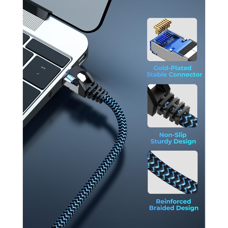 • Wide Compatibility: This high-speed Cat 8 RJ45 braided cable is compatible with Cat 7, Cat 6a devices. It is suitable for all devices with an RJ45 connection, such as modems, adapters, smart TVs, hubs, modems, WiFi routers, network printers, media players and more