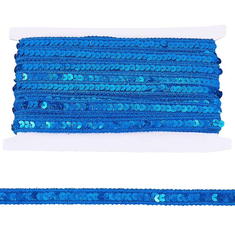 Blue Sequin Trim: Composed of a single row of sparkling sequins, this ribbon is perfect for sewing and will make your garment shine and style
