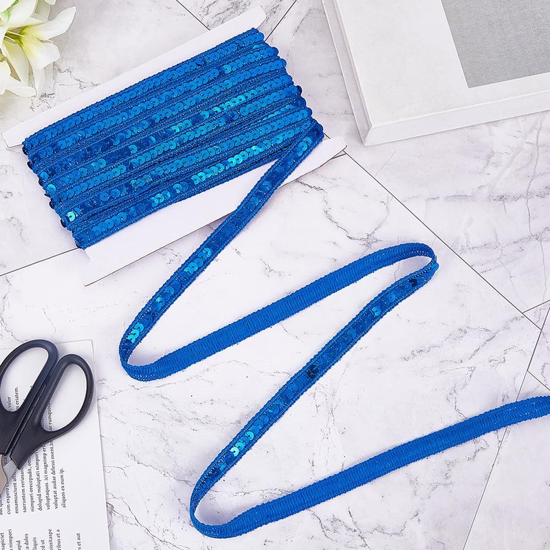 CABODYALS 10.93 Yards 1/2 Inch Blue Sequin Lace Trim Glitter Paillettes Strip String Single Row Beaded Spangles Upholstery Fabric Ribbons for Sewing Making Clothes Home Embellishment DIY Craft Supply