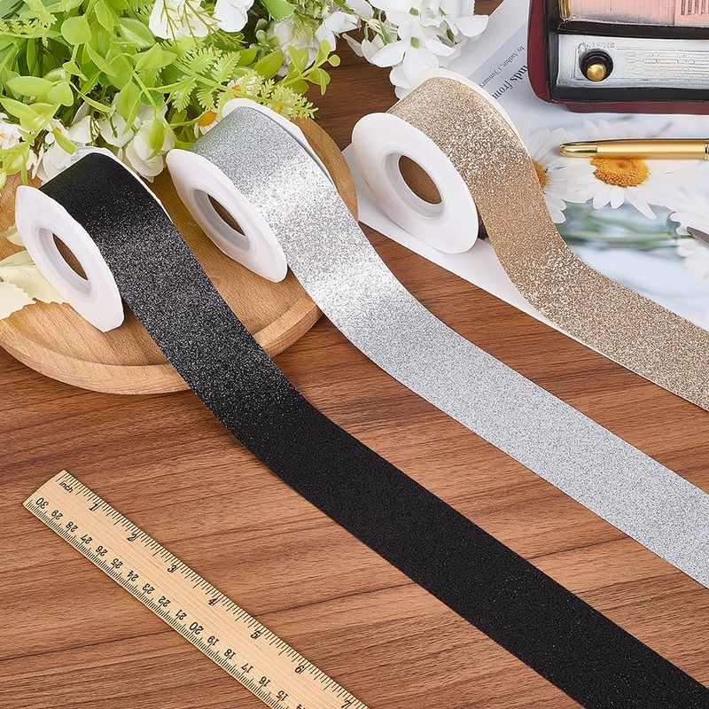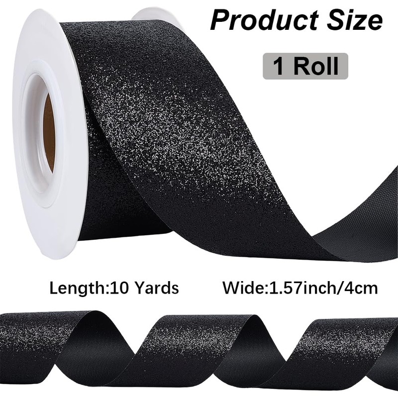 - Size: Black bling ribbon: each roll of black glitter ribbon is about 1 1/ 2 to 1 5/ 8 inch( 38 to 40mm) wide, 10 yards( 9.14m)/ roll