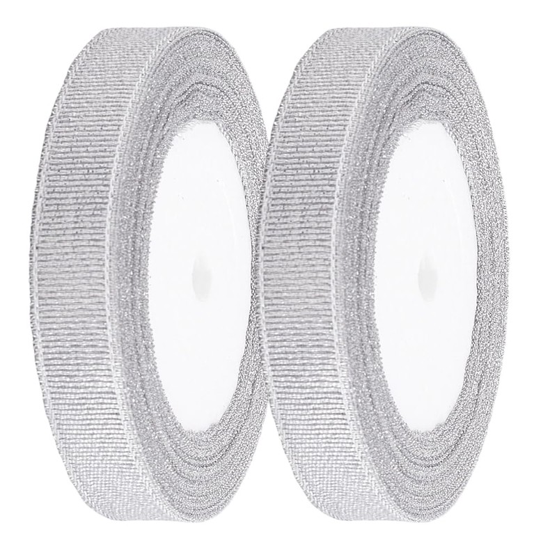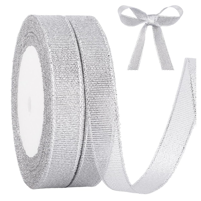 - Size: The silver glitter metallic ribbon is about 0.63 inch ( 15 mm) wide, about 25 yards/ roll
