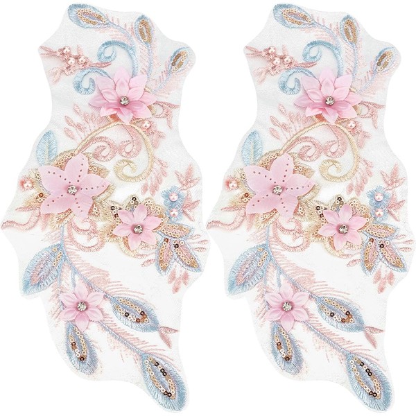 - 2Pcs Beaded Sequin Lace Applique: Carefully selected sequins blend perfectly with the flowers, making the flowers sparkle in the sunlight, adding a touch of sparkle to the 3d floral embroidery applique, adding a unique visual effect to your wedding and dress