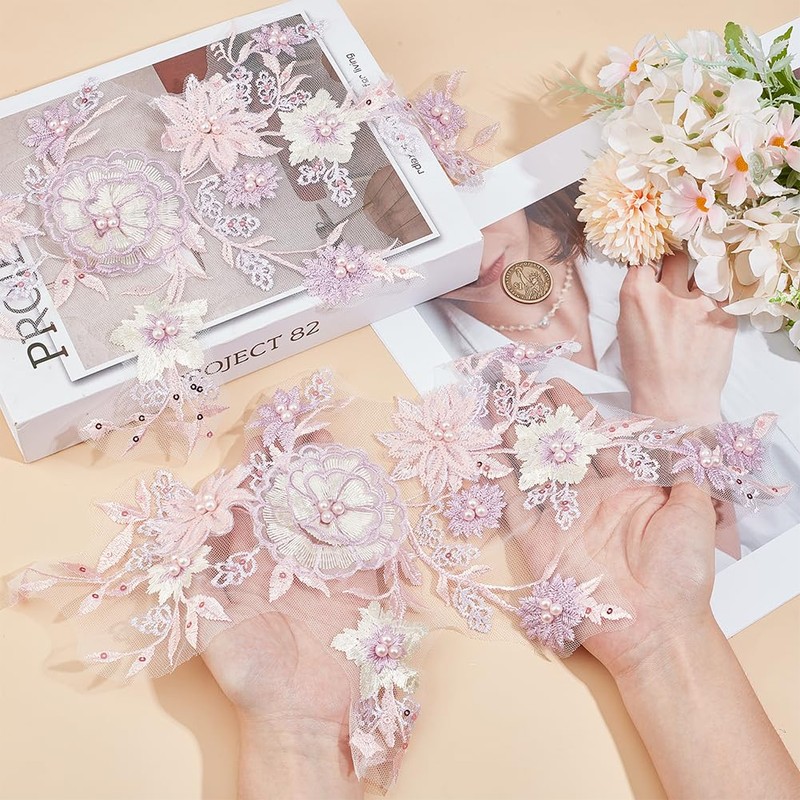 - 2Pcs Beaded Lace Applique Pink: This 3d floral sequin applique is a perfect combination of sparkling sequins and elegant pearls, creating an aesthetic that is both classic and modern. The beaded lace applique pink is embroidered in three dimensions to add sophistication to your gown and sewing