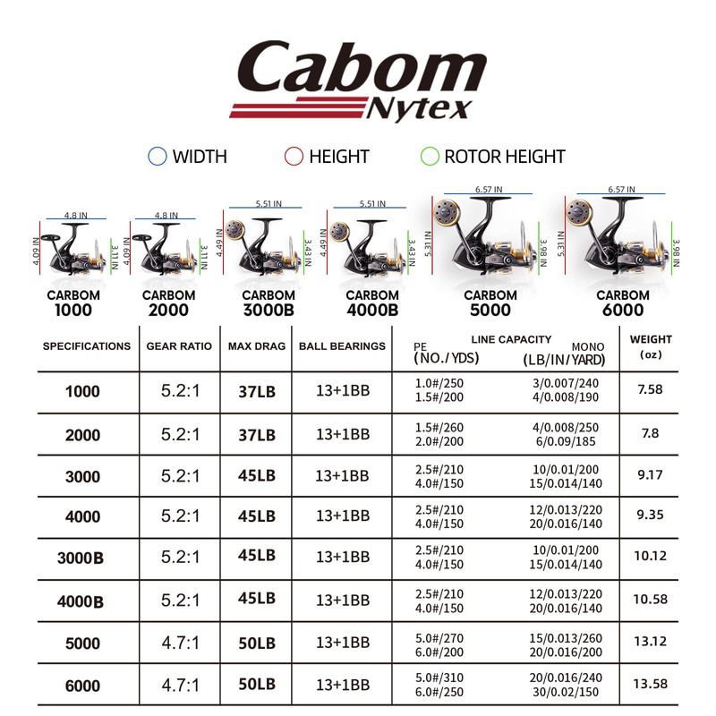 - 【Advanced Composite Structure】: The Cabom Nytex spinning fishing reel features a premium aluminum alloy frame and a carbon fiber drag system, ensuring exceptional performance and long-lasting durability in challenging fishing environments. It easily withstands saltwater erosion and sand friction.