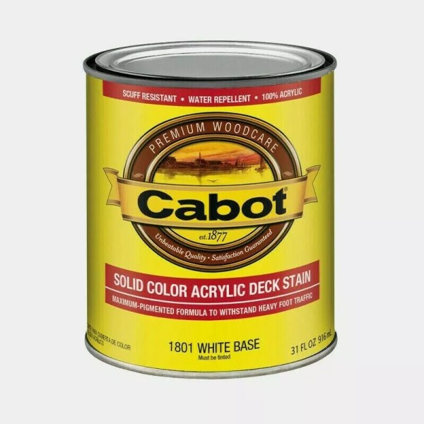 Cabot SOLID COLOR ACRYLIC DECK STAIN 31 fl oz 1801 WHITE BASE TINTABLE NEW!
