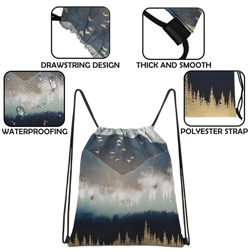 Cabreche Drawstring Backpack Draw String Sports Bags for Gym Travel Beach Waterproof Cute Sackpack Men Women Aesthetic (13"×17")-Forest