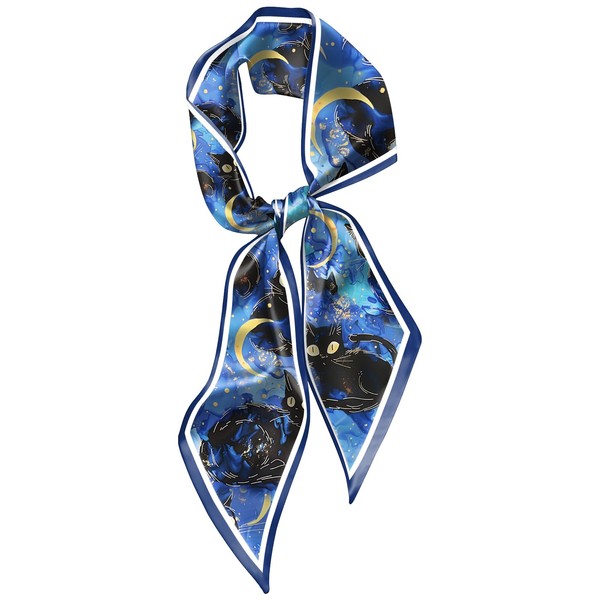 Cabreche Hair Head Scarf Neck Scarves Silk Feeling Long Satin Fashion Cute Aesthetic Decoration Handbag Women Girls 59 * 6.7''-Black Cat