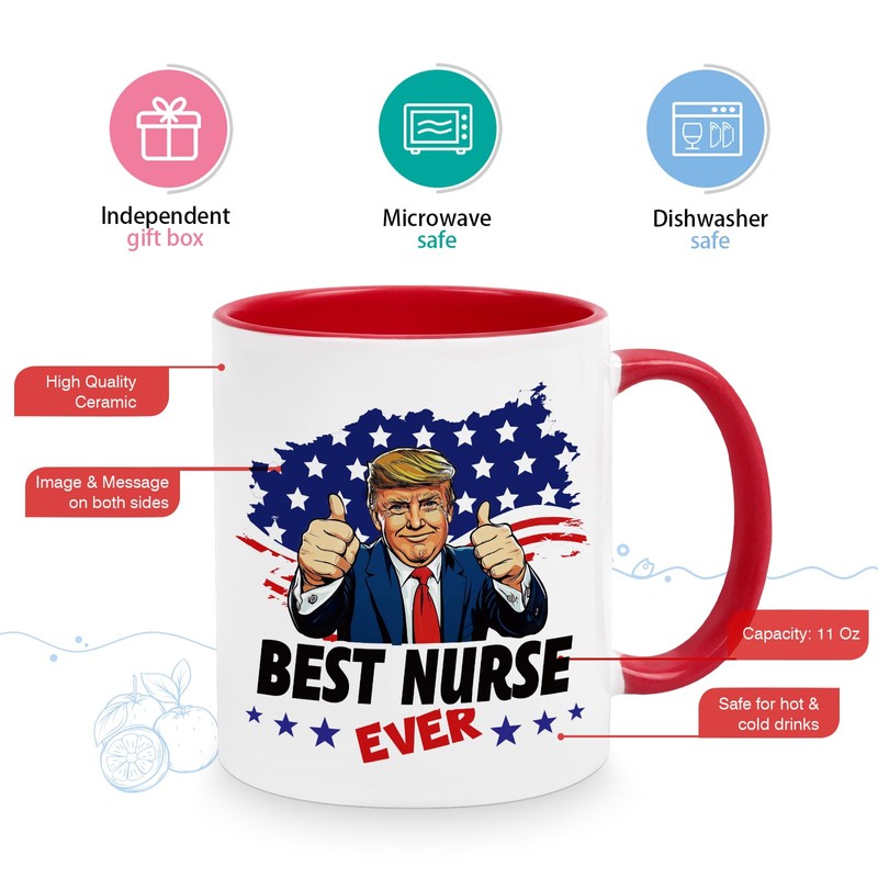 - PRINTED ON BOTH SIDES: “Best Nurse Ever” is printed on one side of this trump nurse mug and “You Are a Really Really Great Nurse” on the other. The combination of color and the layout of printing are concordant and aesthetically pleasing.