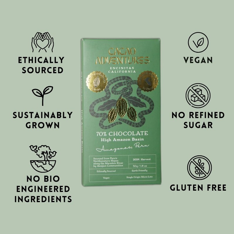 Cacao Adventures - 70% Ceremonial Grade Cacao Bar | Wild Strains | Ethically Sourced Sustainably Grown | (1.76oz - Pack of 3)