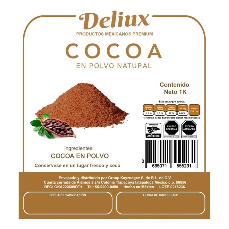 Descripción: Cocoa o cacao en polvo, proviene del grano del cacao criollo de Oaxaca, mismo que ha sido prensado para poder extraer la manteca y garantizar su solubilidad.