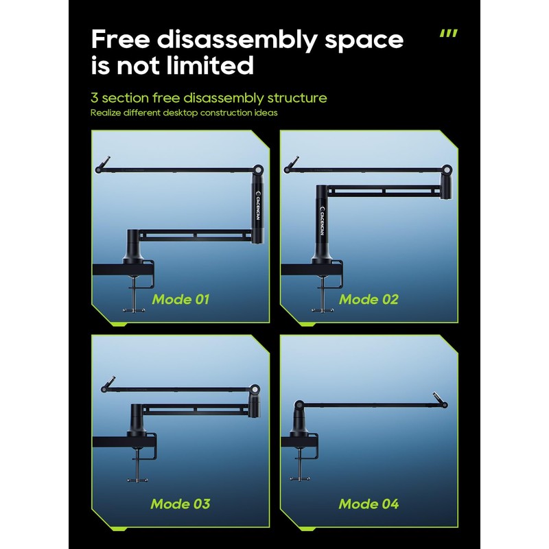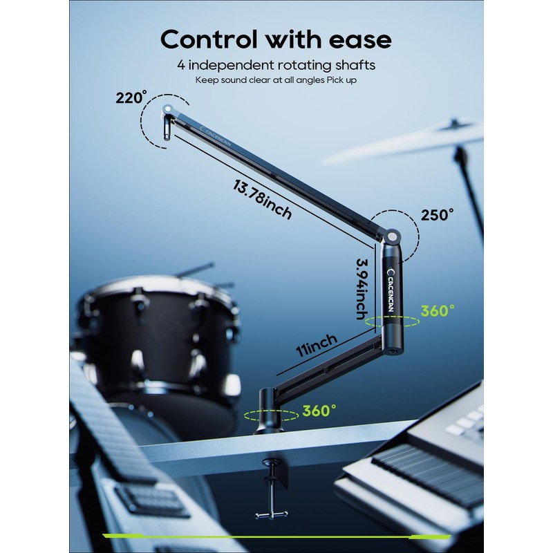 - Extra Length & Height: Equipped with a . inch ( cm) extension rod, it can adapt to wider desks or span across monitors, ensuring that the microphone and boom arm do not obstruct your view, allowing you to adjust the microphone to the perfect position with a adjustable arm that rotates to your needs.