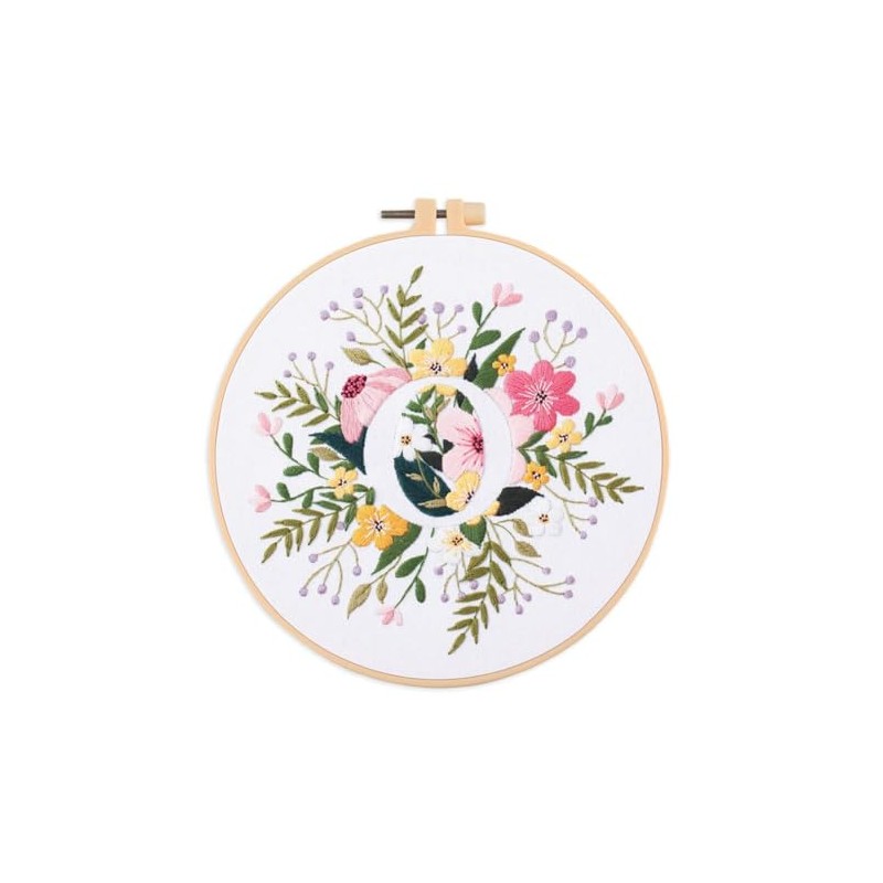 Cachpib Embroidery Kit for Beginners, Embroidery Starter Kits Stamped Cross Stitch Kit with Floral Letter Pattern, DIY Embroidery Kit with Embroidery Cloth Hoops Instructions Needles Threads, O