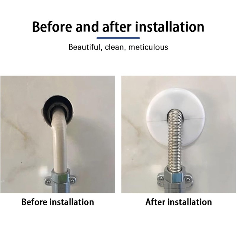 - Make Installation Easy: Double-sided foam adhesive is affixed to the back of the escutcheon ring. Simply peel off the adhesive and attach the wall split flange to the wall surrounding the water pipe or faucet. Adhesives and buckles provide a secure fastening that will not easily come loose