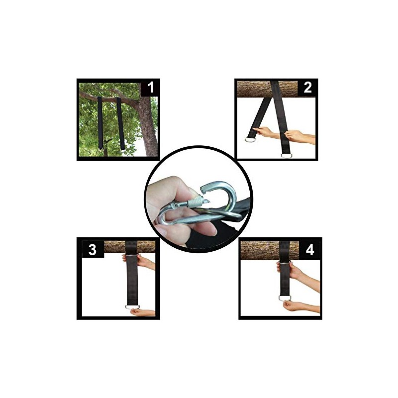 - 【UPGRADED SAFETY DESIGN】:made of high-density nylon,each strap holds up to 2200 pounds.The stitch on the ends adopts a mesh stitching way to be more sturdy and prevents the straps from breaking easily.To prevent the straps from coming off while swinging, we designed our carabiners to include a heavy duty screw lock.the duty screw lock is made of industrial strength steel making it nearly indestructable.The D rings are also thicken to 10mm for higher bearing capacity to provide better security.
