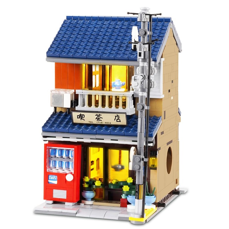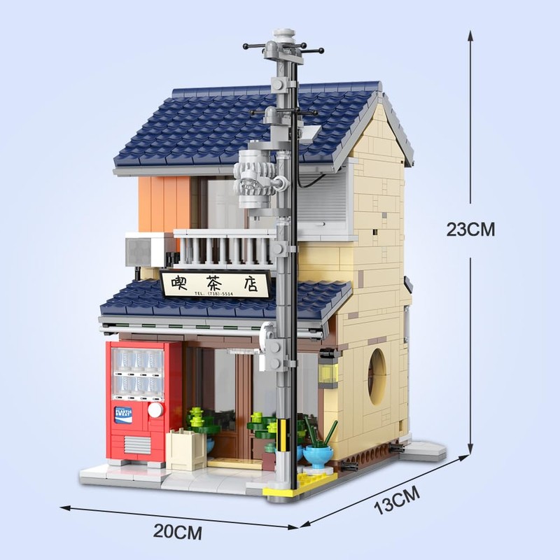 - High Quality and Details: Containing 1,200 parts, this building block set is rich in details, with traditional signs and wall-mounted lights, and the first-floor entrance courtyard and second-floor balcony provide a realistic touch to the tea shop experience. Living room furniture and chandeliers add to the authenticity and charm of the tea shop. Enjoy the convenience of vending machines and drag doors, just like on a busy Japanese street. Immerse yourself in authentic Japanese architectural style.