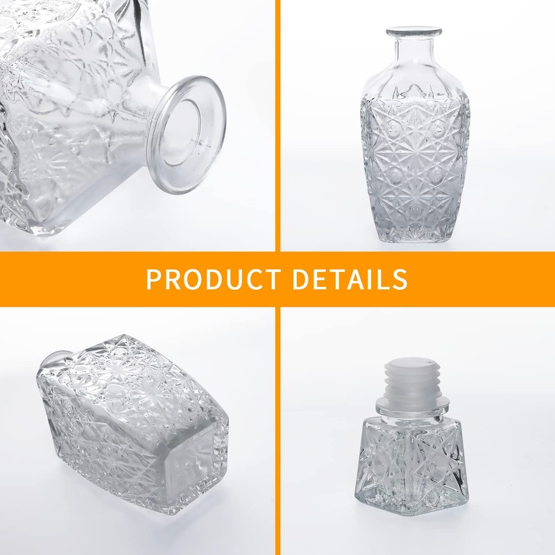 Cadamada Glasses Decanter,26 oz Diamond Pattern Wine Bottle with Lid,Delicate Decanter Set-for Tequila, Brandy, Scotch and Vodka, Gift Giving, Bar and Party Decoration (3pcs)