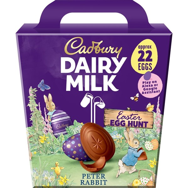 Cadbury Easter Egg Super Hunt Pack. Each gift box contains 22 hollow chocolate eggs individually wrapped in colourful foil It's just perfect for creating your own Easter egg hunt or taking to an Easter party!