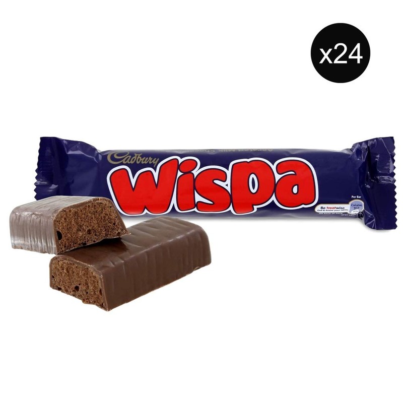 - Cadbury Wispa Bars. 24 Full size chocolate bars.
