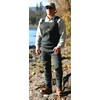 - Comfortable green stocking foot neoprene waders with adjustable suspenders, fleece lined handwarmer pocket and sliding gravel guards.