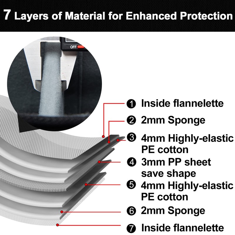 - Twill nylon fabric, high-density pearl foam toe boards. With triangular, physically symmetrical structures, 10 mm thick layers of protection, one-piece aglet, adjustable belt.