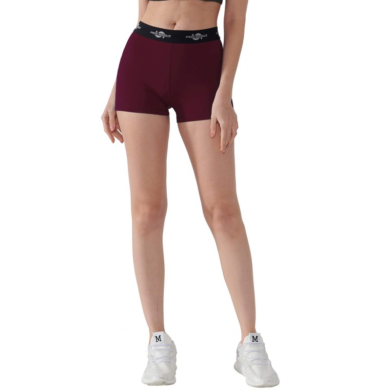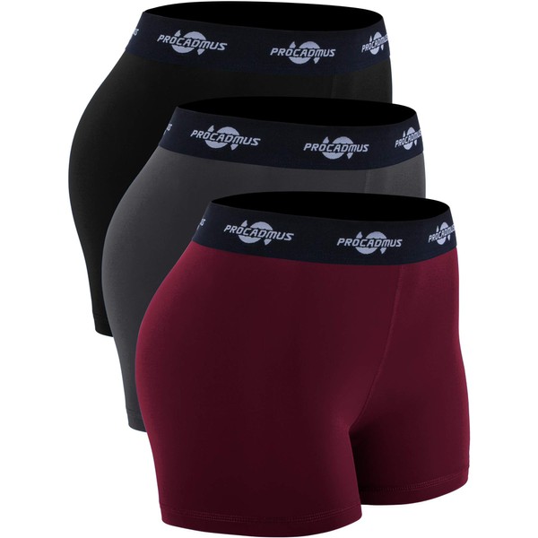 CADMUS Women's Spandex Volleyball Shorts 3" Compression Pro Shorts,Black & Grey & Wine Red,Medium