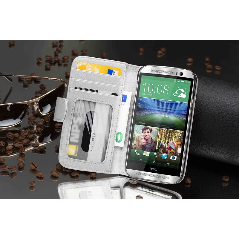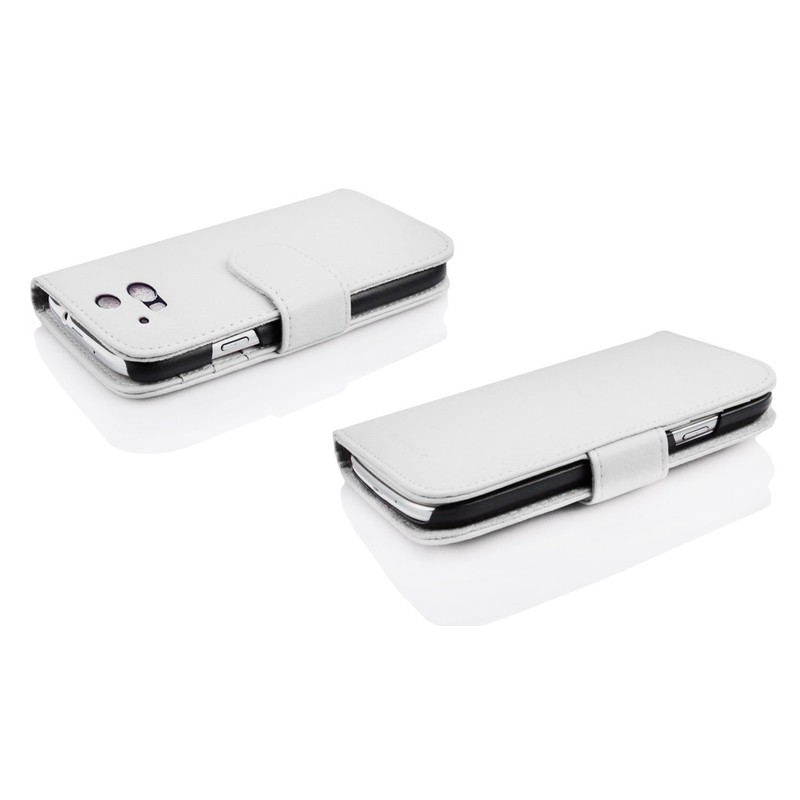 cadorabo Book Case works with HTC ONE M8 (2. Gen.) in SNOW WHITE - with Magnetic Closure and 3 Card Slots - Wallet Etui Cover Pouch PU Leather Flip