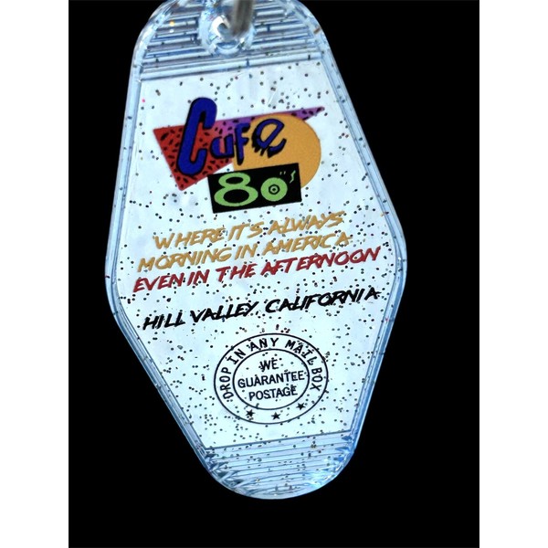 Whether you're a die-hard fan of Marty McFly, Doc Brown, and the DeLorean, or simply love the quirky nostalgia of the 1980s, this Café 80s Keytag is the perfect collectible. Relive the magic of Hill Valley and keep a piece of the past, present, and future with you every day!