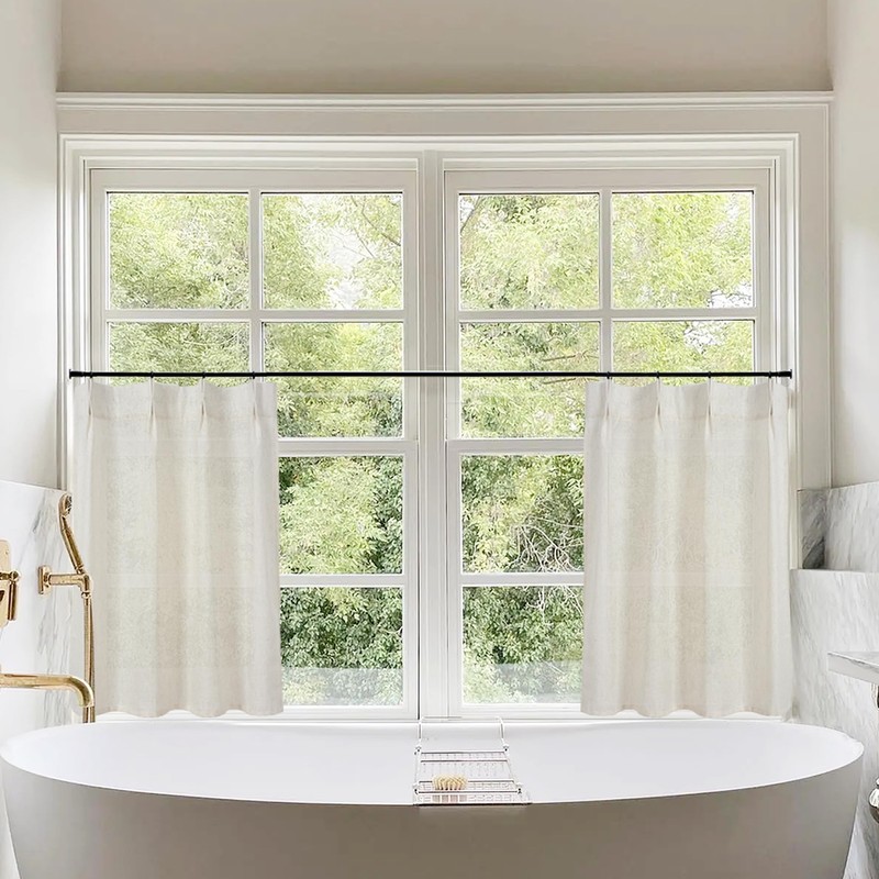- Cotton Linen Polyester Blend Fabric: The LINO ROSA small curtains are crafted from premium linen cotton polyester blend fabrics.Soft touch like real linen but still durable and wrinkle free.Decorative for modern farmhouse cottage core/boho chic/earthy neutral/rustic country room decor. Composition: 20% cotton, 20% linen, 60% polyester.