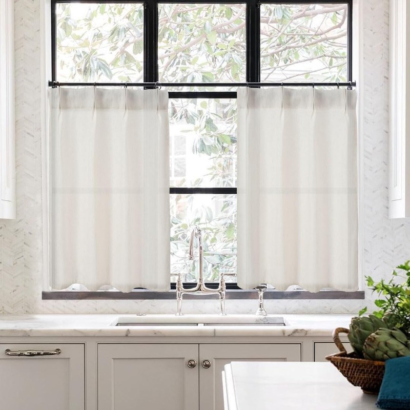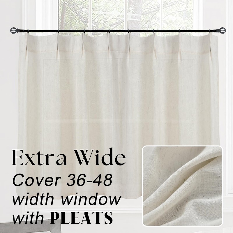 Cafe Curtains 18 Inch Length Pinch Pleat Sheer Linen Farmhouse Tiny Window Set 2 Panels Curtains for Kitchen,24x18 in Long