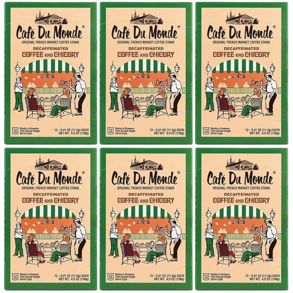 - Enjoy a six boxes of Cafe Du Monde Single Pod Decaf Coffee & Chicory Single Serve Cups.