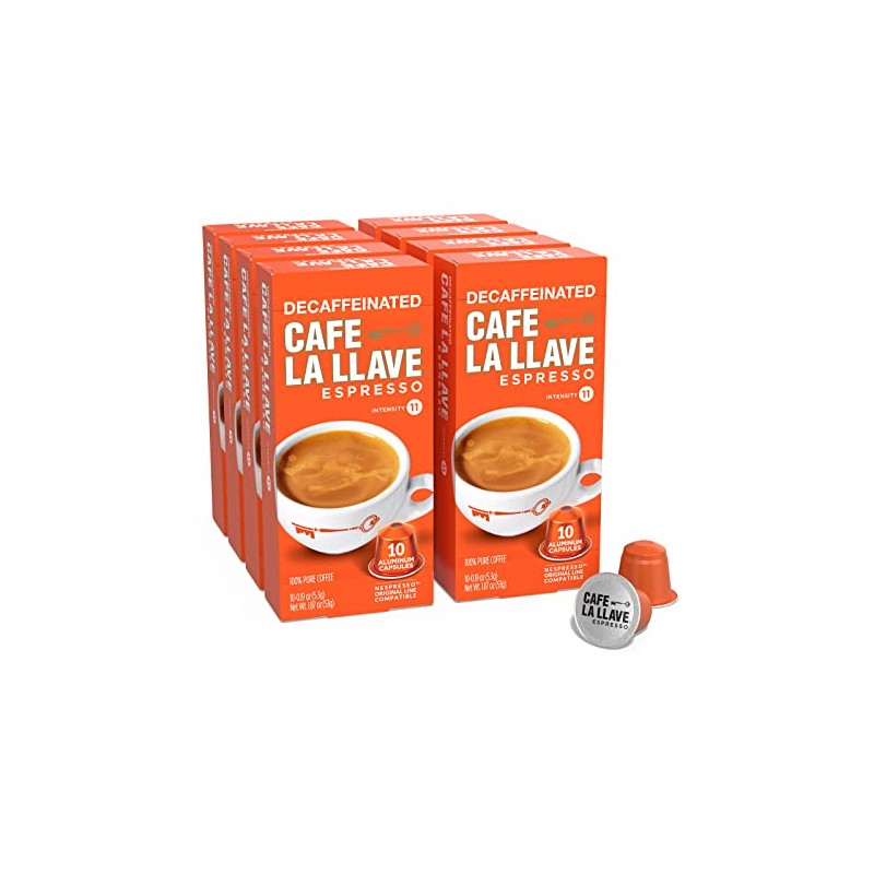 Café La Llave Decaf Espresso Aluminum Capsules, Intensity 11, Dark Roasted Espresso -80 Count- Recyclable Aluminum Single Serve Espresso Pods, Compatible with your Nespresso Original Line Brewers