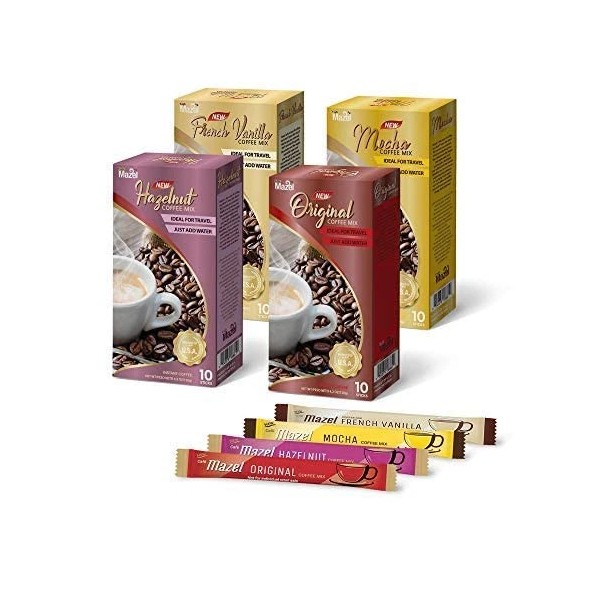 Cafe Mazel Caf Mazel 3 in 1 Instant Coffee Variety Pack 40 Sticks Original Mocha Hazelnu...