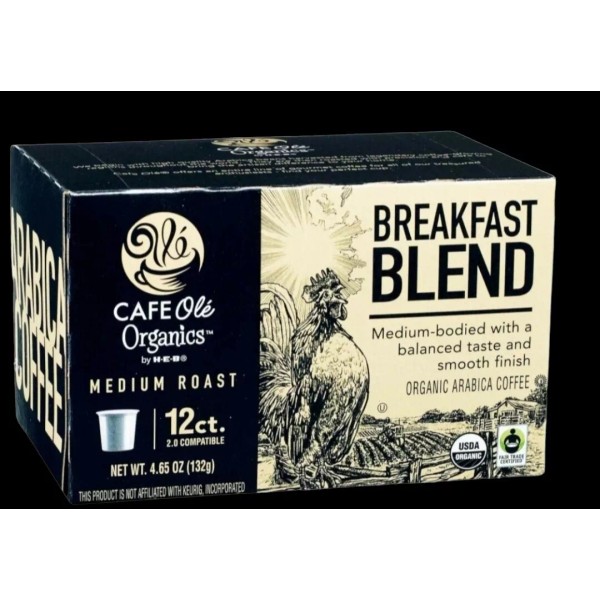 Cafe Ole Breakfast blend medium Organic K Cups Coffee 12 Ct box *FRESH*